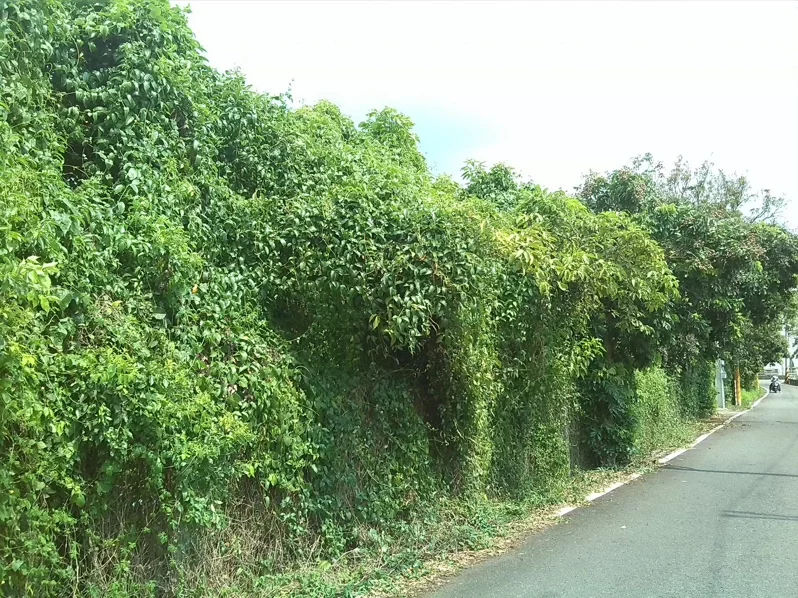 小花蔓澤蘭危害龍眼樹及周邊圍籬,危害台灣農業經濟。圖/南投林管處提供