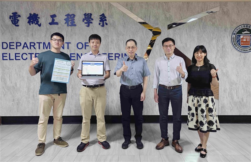 中山大學電機工程學系教授高崇堯(中)與高雄醫學大學泌尿部醫師陳浩瑋(右2)帶領研究團隊合作開發「免開刀人工智慧尿酸結石預測系統」。圖/中山大學提供