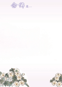 ●念佛是由娑婆穢土到極樂淨土的捷徑,不論快樂或悲傷,依然是念佛;念出習慣、念出行興趣、念出享受的感覺。願將所有的思念與祝福,藉由念佛的功德,迴向給家父往生極樂世界,蓮登九品、花開見佛。(台中 黃韻如)