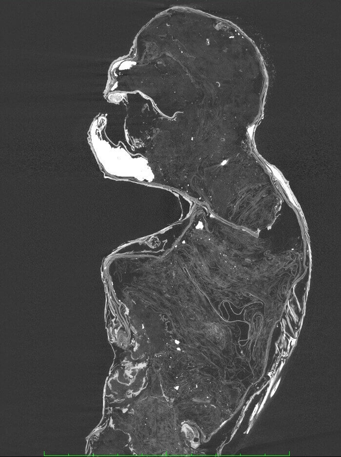 調查結果顯示,有關上半部的「人身」,從斷層掃瞄的影像可看出並沒有像是頭骨、背骨等主要骨骼,其內部由綿進行填充。