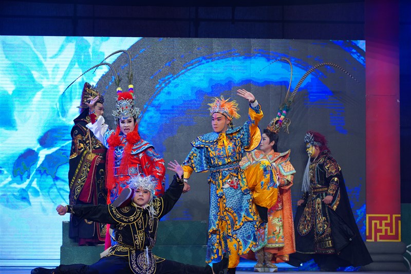 明華園天字團當家小生陳昭香(右2)飾演戲神田都元帥登場。圖/記者王淑芬