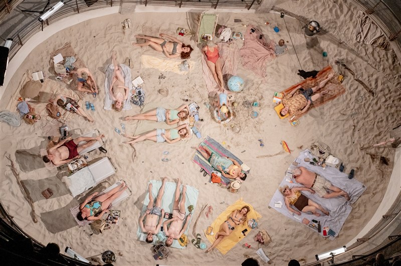 北藝中心表示,當陽光、海灘、悠閒的人們、溫暖的陽光,被移植到劇院內部,觀眾可居高臨下俯瞰演員,彷彿擁有「上帝視角」,超然地觀察地球上各種生物的形態;而海灘上的人們,邊曬太陽邊吟唱內心獨白,包括夢想、日常生活,及氣候變遷與生態浩劫的真相。看似悠閒輕鬆的渡假場景,隱含著高度的社會警醒。