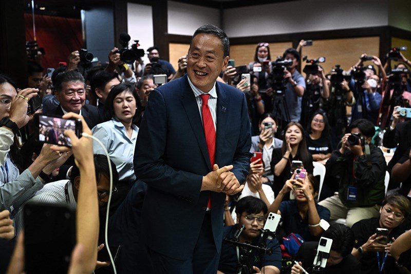 泰國國會第二大黨為泰黨(Pheu Thai)推出的總理候選人、地產大亨賽塔已在參、眾兩院獲超過375票同意,正式當選泰國第30任總理。圖/法新社