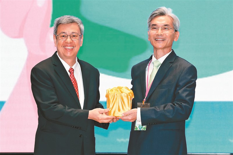環境部揭牌暨部長布達典禮昨日舉行,行政院長陳建仁(左)將印信交給首任部長薛富盛(右)。圖/胡經周