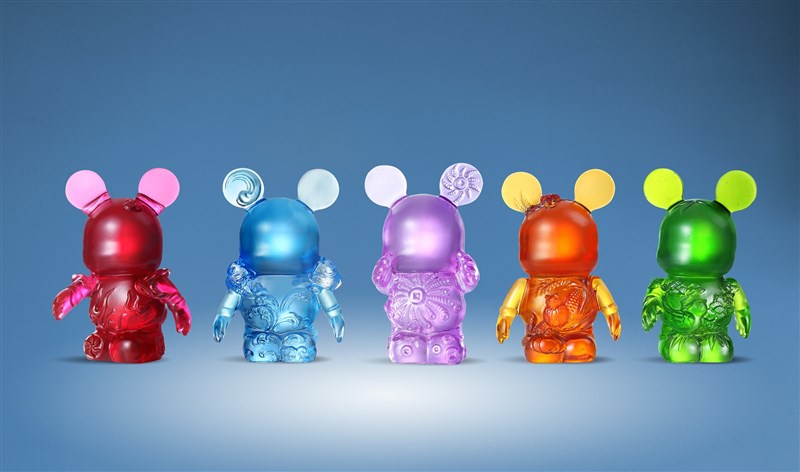 琉璃工房除了將琉璃材質與象徵希望的光影激盪出獨有的炫幻,透過海洋、星光、四季、太陽、大地共五款不同造型顏色的米奇造型公仔具體呈現,更為傳遞愛與關懷、夢想與奇蹟。