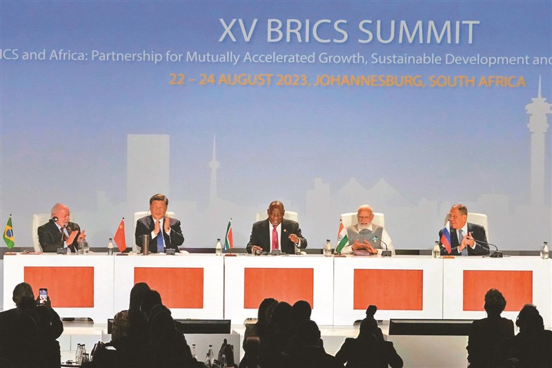 【本報綜合外電報導】十五屆金磚峰會昨日閉幕,宣布接納阿根廷、埃及、衣索比亞、伊朗、沙烏地阿拉伯、阿拉伯聯合大公國加入金磚國家合作機制,明年元旦起生效,這也是十二年來首度增加成員。