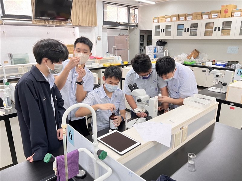 師大附中學生生物實驗教室運用顯微鏡。圖/教育部提供