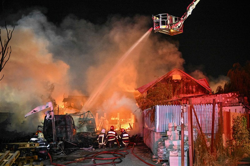 羅馬尼亞當地時間26日,首都布加勒斯特附近的克雷維迪亞鎮1處加油站發生連環爆炸。圖/法新社
