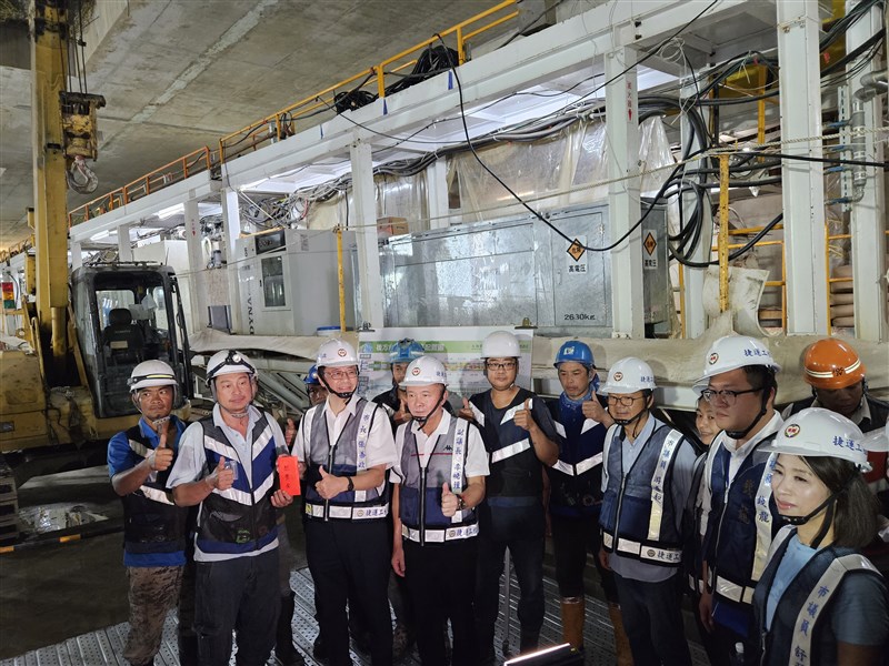 張善政上午視察捷運綠線首段隧道貫通現況,並頒贈加菜金慰勉工程團隊。