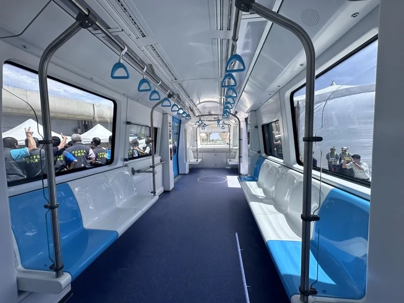三鶯線首列車廂內裝曝光,為了讓乘客有舒服乘車體驗,走道有特地加寬。圖/張曼蘋
