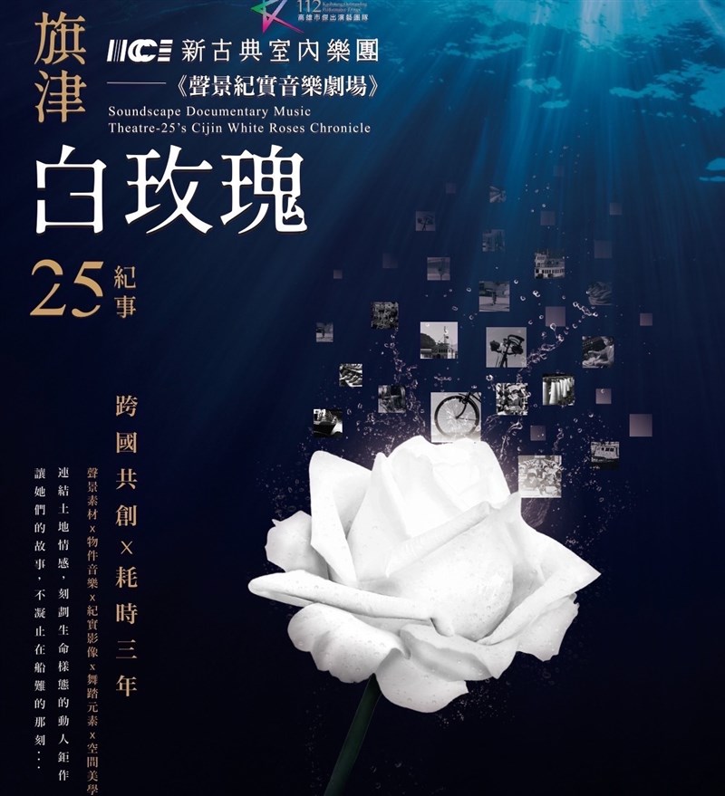 《聲景紀實音樂劇場-旗津白玫瑰.25紀事》,由去年獲得「2022高雄文藝獎」肯定的藝術總監陳欣宜捉刀,以民國62年往返旗津與高雄加工出口區民營渡輪的故事為背景,當時因為船隻超載翻覆,25名年輕女工都不幸罹難。