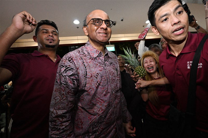 新加坡總統選舉投票結果揭曉,前國務資政尚達曼得票率高達7成,由選舉官正式宣布為總統當選人。。圖/新華社