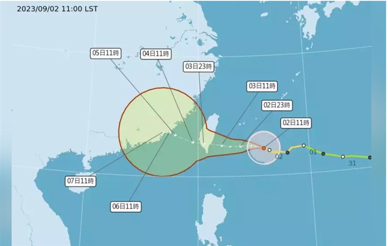 海葵颱風威脅台灣機會大,中央氣象局今天上午11時30分發布陸上海上颱風警報。圖/氣象局提供