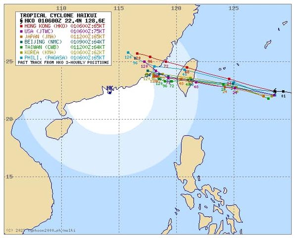 天氣粉專「台灣颱風論壇|天氣特急」指出,各國最新的預報,都認為海葵越過台灣後會直接在台灣海峽停下來。圖/翻攝「台灣颱風論壇|天氣特急」IG粉專