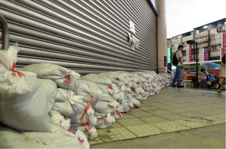 為了避免大雨導致家中、室內淹水,堆沙包是最常見的防颱準備工作。在沙包最內層的地方,應先鋪上防水布,如果沙包裡的沙子有硬塊要先拍打、搓碎。沙包應堆在進出大樓通道口、地下停車場出入口和地下室氣窗外,堆置高度以過去曾經淹水高度的1.5至2倍為準。