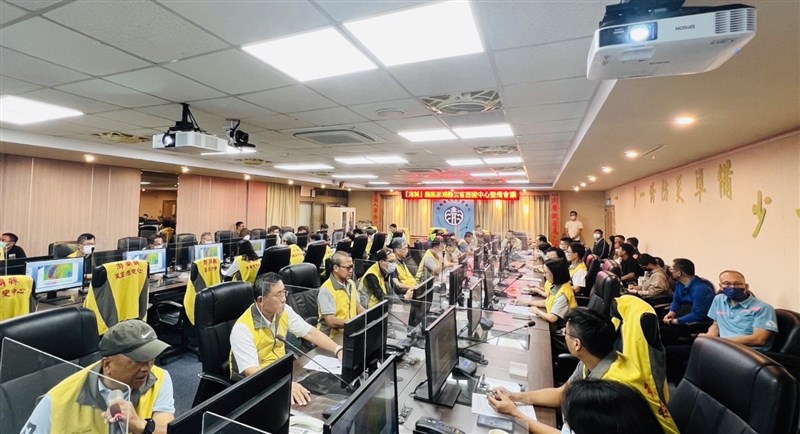 澎湖縣長陳光復召開應變會議,要求各編組加強防颱工作。圖/澎湖縣政府提供