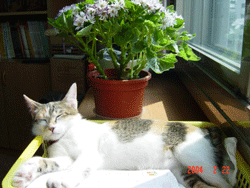 母貓醒了,踱到另一塊有陽光的地方,重新臥了下來,接著打盹兒。