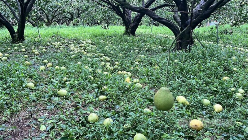 颱風海葵3日侵台,造成台東地區嚴重農損,產季將至、即將採收的柚子也掉落滿地。圖/中央社