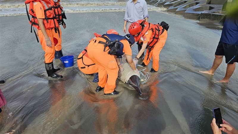 瓶鼻海豚擱淺台南黃金海岸 眾人展開救援 |2023.09.05 語音朗讀 3385觀看次 字級 大 中 小 瓶鼻海豚今(5日)清晨擱淺在台南市南區黃金海岸,海巡署岸巡人員到場救援。圖/黃宣翰 【本報台南訊】「有海豚擱淺在沙灘!」台南市南區黃金海岸今(5日)清晨7點多有早起運動民眾發現有隻海豚擱淺在沙灘上,海巡署岸巡人員也到場通報鯨豚救援中心人員展開救援。今天清晨7點多有早起運動民眾,在南區黃金海岸發現有隻海豚擱淺在沙灘上,民眾一度合力將海豚抬回大海,海豚虛弱無力游回大海,又被海浪推回岸邊。消防人員接獲報案後同時通報海巡署岸巡人員趕到現場,海巡人員盡力安撫鯨豚,為避免海豚氣孔進水,先將其固定安置於岸上,以溼布覆蓋其身,持續灑水保持溼潤,連繫成大海洋生物及鯨豚研究中心人員展開救援。圖/黃宣翰據了解,從這隻海豚外觀,特徵看來可能是瓶鼻海豚。鯨豚研究中心人員正開車前往現場,將評估討論後,再後送海豚到安南區四草鯨豚救援中醫治。近年來海豚擱淺於岸際時有所聞,海巡署人員指出,為關懷海洋永續及保育海洋生態,民眾於岸際發現相關保育類動物擱淺或救援,可直接撥打118服務專線,將立即派員前往處理,拯救每條珍貴的海洋生命。圖/黃宣翰 前一篇文章 雲林15萬噸垃圾山 改製燃料棒因法規限制消化不完 下一篇文章 台灣國際觀鳥馬拉松 南韓登山家組隊參加 熱門新聞 01佛光會參與COP30 推廣環保與心保2025.11.1302新馬寺大專佛學生活營 學習生活中覺有情2025.11.1303法華禪寺皈依典禮 佛子開啟修行旅程2025.11.1304球星陳傑憲出書 盼助人跨過低潮2025.11.1305【相守一輩子】 學習向另一半求助2025.11.1306璀璨燈光 映照千年運河2025.11.1307土耳其運輸機墜毀 20軍人罹難2025.11.1308【觀我望己】追日,散策旅程 (下)2025.11.1309健力世錦賽 中華隊再奪3金2025.11.1310習近平會西班牙國王 盼成戰略夥伴2025.11.13 訂閱電子報 台北市 天氣預報 台灣一週天氣預報 相關報導 日月潭沒降雨蓄水率增加 水力發電助攻屏東書院園區公告 不能再亂餵鳥類及野生動物 尊重原民文化 七彩湖擬畫保護區盼善意對待海洋 屏東再啟動回收廢漁網計畫要維護生態 丹大地區劃設保護區桃園市復興區櫻花開 罕見「藍喉太陽鳥」現身