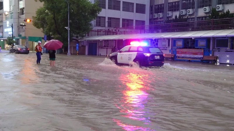 彰化平原今天下午近3點下起強降雨,半小時後低窪地區積水,員林警分局陸續在彰化基督教醫院周邊的靜修路、新生路、莒光路一帶,中山路以東的大同路到育英路之間等多處拉起封鎖線。