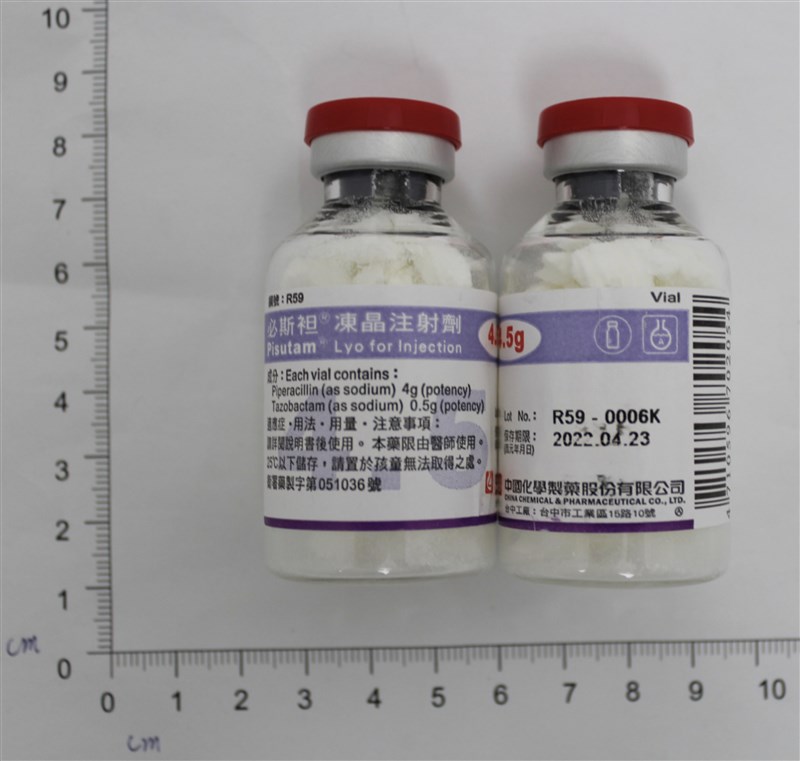 根據衛生福利部食品藥物管理署公布藥品回收訊息,中國化學製藥股份有限公司台中工廠的「必斯袒凍晶注射劑 Pisutam Lyo for Injection」,批號R59-0070K的產品,因接獲怨訴有異物混入,啟動回收。