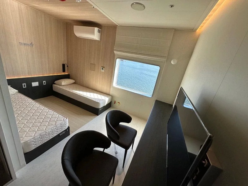 海葵攪局澎湖輪首航延至今日 纜繩斷裂嚇壞遊客 |2023.09.07 語音朗讀 1151觀看次 字級 大 中 小 原定9月5日首航的澎湖輪,遇海葵颱風攪局,延至今日首航,載運268名旅客、60輛大小車輛於清晨5時30分許抵達澎湖馬公港。圖/台航提供 【本報澎湖訊】原定9月5日首航的澎湖輪,遇海葵颱風攪局,延至今(7)日首航,載運268名旅客、60輛大小車輛於清晨5時30分許抵達,2艘噴水船引領進入馬公港,在港邊泊靠時,纜繩突斷裂發出巨響,即使到港出現小插曲,但首航仍為澎湖交通史寫下新頁。高雄往返澎湖的海上運務原由「台華輪」負責,因台華輪老舊,上月23日「台華輪」末班船搭載228名旅客、44輛車,行抵高雄港後正式退出兩地交通,成「歷史輪」,由全新打造的「澎湖輪」接手營運。「澎湖輪」由日本內海造船廠所建造的全新船舶,船舶全長近120公尺、總噸位為9932噸、最大船速22節、最大載客數600人、最大載運量可同時承載大型遊覽車4台及小客車82台。設有貴賓艙2間、特等艙8間,其中2間為無障礙艙間、頭等艙10間、臥鋪艙60間;搭配商務座艙60位及經濟座艙240位。澎湖輪內裝以暖色系為主,空間明亮通透,公共區域都有舷窗可以眺望大海。圖/取自楊曜臉書內部空間規畫由曾協助台鐵設計鳴日號的設計師邱柏文操刀,座艙椅空間大可以斜躺,分為經濟臥艙、套房式臥艙,其中高檔艙間還有浴缸,整體空間以暖色系的木紋飾板為主,設計具質感,猶如海上航行的旅館。澎湖輪原定9月5日首航,遇颱風海葵攪局,延至昨深夜從高雄港啟航,今日清晨約5時30分許抵達馬公港,但港邊纜繩突然「啪」的一聲斷裂,讓船上旅客和港邊歡慶澎湖輪抵達的民眾嚇了一跳。台灣航業公司指出,澎湖輪座艙票價從高雄出發至澎湖,經濟座艙每人860元、最高級特等艙1700元,VIP雙人艙則是6000元。澎湖輪VIP雙人艙間,空間大,猶如海上旅館。圖/取自楊曜臉書 前一篇文章 憂鬱不等於自殺 肯愛社服呼籲症友勇於治療 下一篇文章 北流文化館歡慶2周年 打造13金曲月台 九月壽星免票看展 熱門新聞 01WTA、ATP年終賽 獎金創新高2025.11.0702再闖WTA年終賽 謝淑薇力拚第2冠2025.11.0703健保補充保費變革 政院急踩煞車2025.11.0704佛光山大學校長論壇 盼教育融入佛法2025.11.0805【詩】再現綠川2025.11.0706小蠻牛對決辛納 爭年終賽球王2025.11.0707補充纖維、鈣、鎂、鉀 預防多種疾病風險2025.11.1108星雲大師全集【傳記】百年佛緣─生活篇 我的衣食住行 5-52025.11.0709美國好手輩出 10人晉級年終賽2025.11.0710【養生百味】冬食淡素 防範疾病2025.11.08 訂閱電子報 台北市 天氣預報 台灣一週天氣預報 相關報導 迎銅鑼杭菊季暴雨襲蘇澳 千戶泡水成光復2.0154縣道榕樹藏危機 評估移樹鳳凰來襲 菜農搶收和時間賽跑芬普尼蛋場 食藥署:逐批查驗玉山觀高山屋 下月起收費