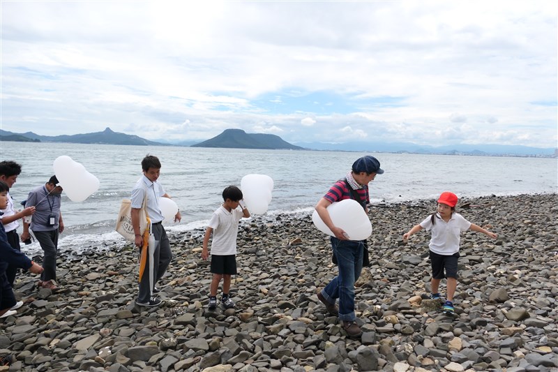 【記者曹麗蕙台北報導】第二屆馬祖國際藝術島展出藝術家高橋匡太,9月6日到日本香川縣高松市立男木小中學校,邀請全校師生共同創作《通往雲的故鄉》作品,由在地學生撿拾男木島的石頭為「雲氣球」落地,並在綁繩上的車票寫下各自想去的地方,希望透過島嶼上的石頭,連結小朋友們生長的土地。接下來高橋匡太將帶著「雲氣球」到馬祖,與馬祖在地孩童共創,串起馬祖與男木島獨特地景和台日情誼。