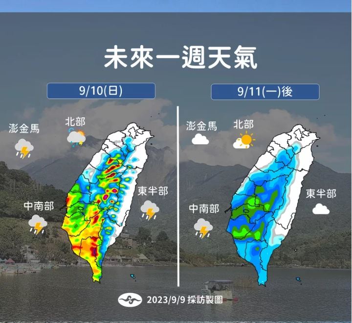 【本報台北訊】今天(9日)持續受到低壓帶影響,中央氣象局預報員趙竑說,今天天氣不穩定、水氣較多,這種情況會持續到明天,下周一北方乾空氣開始南下之後,台灣各地降雨才會慢慢趨緩,各地可見陽光。