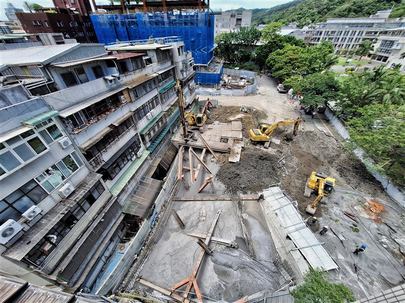 基泰建設公安意外導致台北市中山區大直街94巷民宅塌陷,9日上午工地進行灌漿作業。圖/曾原信