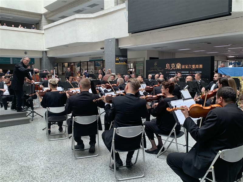 今天的記者會在市府中庭舉行,高雄市長陳其邁、文化局長王文翠、烏克蘭國家交響團總經理亞歷山大 . 霍爾諾斯塔伊率全團79名團員現場演出,在演奏《烏克蘭國歌》之後,以台灣民謠《望春風》展現對在地文化的崇敬和友誼。