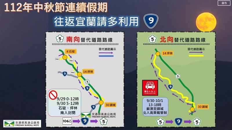 112年中秋節連續假期國5替代道路。圖/高公局提供