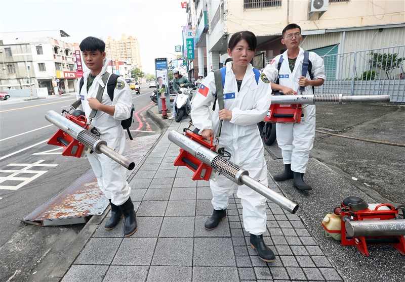 女大兵上陣!化學兵南下高雄支援登革熱噴藥 |2023.09.12 語音朗讀 459觀看次 字級 大 中 小 高雄市登革熱疫情持續升溫,國軍八軍團化學兵今(12日)南下高雄支援噴藥工作,化學兵上士鄭竹珊(右二)是唯一的女性化學兵。圖/劉學聖 【本報高雄訊】高雄市登革熱疫情有升溫現象,上百病例分散多個行政區,部分區里發生群聚感染,市府向中央請求國軍支援,今天出動30名化學兵展開社區登革熱「防疫戰」,支援噴藥滅蚊工作,今(12日)一早化學兵們身著防護衣,進入民宅噴藥消毒,其中還有一名年輕女大兵身著密不透風的防護衣,巾幗不讓鬚眉站在第一線協助噴藥,國軍化學兵們預計在高雄支援一個月,希望能讓疫情降溫。高雄市登革熱疫情持續升溫,至昨已累積達243例,病例分散多個行政區,國軍八軍團今派遣30名化學兵南下高雄,支援噴藥滅蚊工作,一早化學兵們身著防護衣,進民宅消毒,其中還包括女大兵,巾幗不讓鬚眉站在第一線,化學兵們預計在高雄支援一個月,期盼有助讓疫情降溫。八軍團表示,高雄本土登革熱病例持續增加,今日派遣30名化學兵,分別投入左營、前鎮、鳳山、楠梓、小港等行政區進行防疫消毒,希望全面降低病媒蚊風險。圖/劉學聖今一早在楠梓區軍校路,化學兵們戴護目鏡、穿著全身防護衣,進入民宅噴藥消毒,每兩個小時休息約十分鐘,期間不能喝水,天氣很悶熱,化學兵們個個汗如雨下,但都沒有怨言。上士鄭筑珊是今支援楠梓消毒工作唯一的女性化學兵,她說,先前與同袍已在台南噴藥多天,今起奉命到高雄支援,行前他們都已接受完整訓練,希望此次噴藥有助讓疫情降溫。高雄市昨新增登革熱本土個案14例,累計243例,發病期間介於9月4日至9月10日,分別為三民區2例;大寮區、鳳山區、鼓山區、前鎮區各1例,社區群聚計有8例,小港區5例、左營區2例、大寮區1例。支援噴藥的化學兵噴完藥後、汗如雨下,臉上還留有護目鏡的痕跡。圖/劉學聖國軍八軍團的化學兵今南下高雄,支援噴藥、防治登革熱的工作。圖/劉學聖 前一篇文章 農業部關懷農村長者 節慶送暖預期受惠8000人次 下一篇文章 「河川守望」三年有成 為印尼清除120萬公斤塑膠垃圾 熱門新聞 01【分數之外】看見另一種英文2026.04.0802男子氣概照護員 日本長照新力量2026.04.0503【轉移注意力】往理想中的自己邁進2026.04.0504降雨兩樣情 南部水庫沒解渴2026.04.0605一紙學歷換錢景 美學位價值遭質疑2026.04.0506美課藥品重稅 台灣沒優惠 2026.04.0407租賃車業者違法攬客 觀光署:最高罰200萬元2026.04.0708【深頁凝視】《後院的鳥》凝神注視鳥兒登場2026.04.0509MLB鄧愷威拆彈 守住今井旅美首勝2026.04.0610暴雨狂炸苗栗 災情頻傳 2026.04.05 訂閱電子報 台北市 天氣預報 台灣一週天氣預報 相關報導 15%小琉球海龜曾受傷 癒合均需1年半古坑桐花季 18日浪漫登場清明豪雨 合歡溪出現新堰塞湖火金姑故鄉 賞螢好去處計程車掛牌費喊到35萬元 交部出手塑膠袋之亂 中南部缺貨嚴重