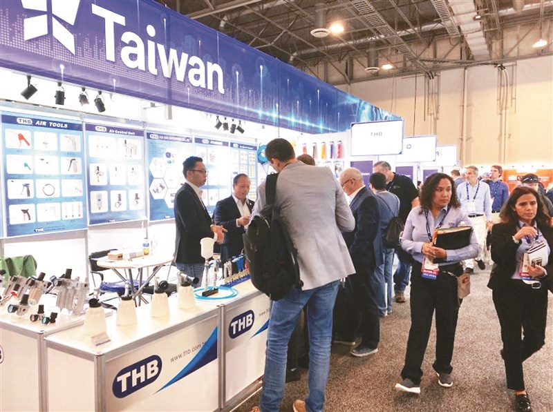 經濟部明後年投入20億元,加碼補助企業出國參展。圖為去年美國汽車售後服務市場零配件展的台灣館。圖/資料照片