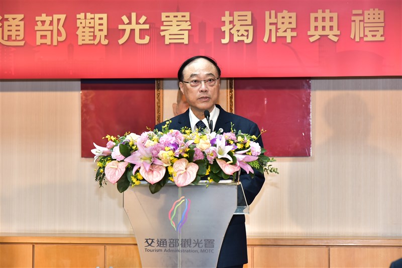 交通部觀光署揭牌典禮,首任署長周永暉致詞。圖/交通部觀光署提供