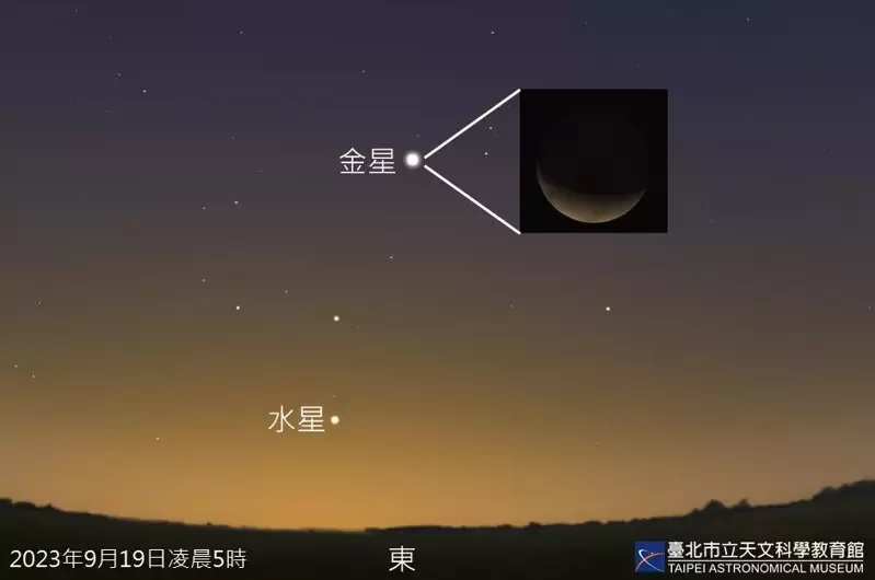 【本報台北訊】太陽系八大行星中最明亮的金星,將在9月19日達到今年第二次、也是最後一次的最大亮度,約-4.7等,其耀眼的程度甚至可在暗處對物成影,拂曉3時左右從東方升起後,金星將是全天空最亮的明星,想不看到都很難,以30倍左右的望遠鏡還可以看出其如眉月般的外觀。