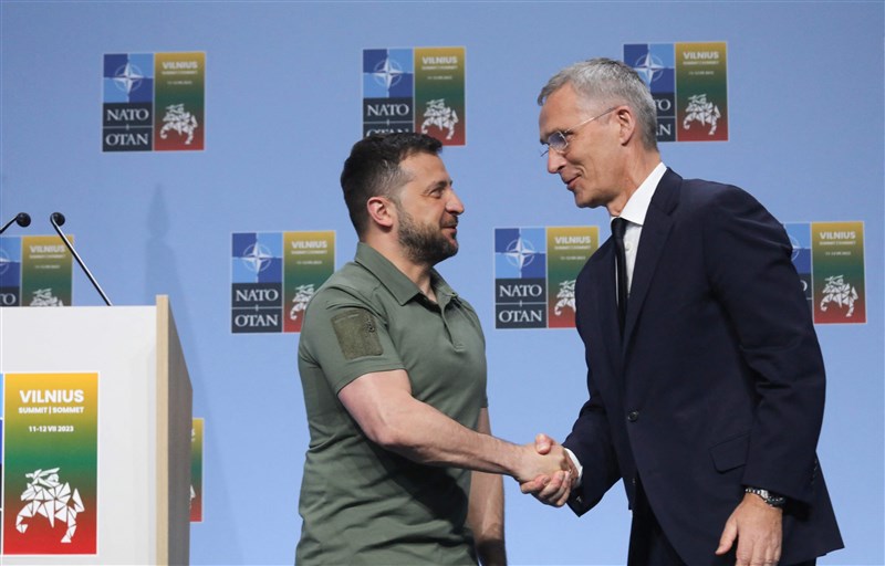 7月在立陶宛首都維爾紐斯(Vilnius)舉行的北約峰會中,各國領袖同意,烏克蘭可以在某些條件達成時加入北約。