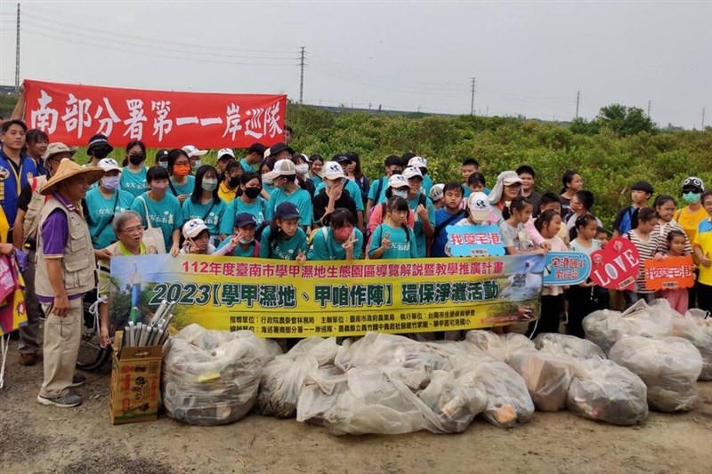 台南市生態保育學會與台南市政府農業局、海巡署南部分署等單位合作,號召100多名義工與學生執行環保淨灘,從學甲濕地生態園區向急水溪北側堤防出發,沿途一邊欣賞紅樹林及招潮蟹等生態景色,並撿拾塑膠袋、雜物、雜草及保麗龍等,最後統計共清出350公斤垃圾,隨即由學甲清潔隊協助清運。