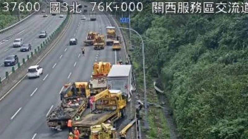 今年9月5日國3北向76公里處大貨車撞外側護欄事故。圖/交通部高速公路局提供