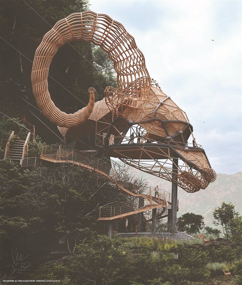 3D建築模型 建物融入大自然 |2023.09.20 語音朗讀 611觀看次 字級 大 中 小 利亞納吉以老鷹為主題創作的別墅,平靜地坐落在寧靜的自然環境中。圖/取自FB@Thilina Liyanage利亞納吉將野生動物觀景台概念化為大角羊形狀,為遊客提供俯瞰自然的體驗。 圖/取自FB@Thilina Liyanage利亞納吉選擇蘭花,作為別墅設計的靈感,是他迄今為止最美麗的作品之一。圖/取自FB@Thilina Liyanage 【本報綜合外電報導】斯里蘭卡設計師利亞納吉(Thilina Liyanage)利用鉛筆、紙板和源源不斷的創意,做出令人驚嘆的視覺化建築模型,平靜地坐落在寧靜的自然環境中,由於當地文化、宗教和傳統生活,他受到古代寺廟、遺址傳統繪畫和建築的影響,把熱帶環境和自然元素用於設計概念中,以老鷹、山羊、大象、蘭花……等各種動植物為主題,創作出觀景台、別墅等建物。在最近的作品中,利亞納吉將野生動物觀景台概念化為大角羊形狀,為遊客提供俯瞰自然的體驗。3D模型以木頭和柳條製成的有角羊頭部為特色,位於一個大型公園內,有個長樓梯將升高的平台連接到下方的地面,雕塑的頭內部有一個平坦的甲板供人行走,而頭頂則提供遮蔭和防晒。利亞納吉是自然愛好者,總是透過觀察大自然來為專案尋找靈感,他住在寧靜的地區,有很多大自然的東西,有水道、水田和小森林,他從花、鳥、哺乳動物和海洋生物這些元素中獲取靈感,甚至從每天散步時可能遇到的小卵石尋找新概念。竹子當建材減少碳足跡一旦利亞納吉有想法,他就迅速用鉛筆在紙上畫出草稿,在某些情況下,利亞納吉會用紙板製作建築模型。根據最初的基本草稿,開始在電腦軟體中建造模型,然後進行紋理處理。利亞納吉使用的材質主要來自自然元素,如竹子、木材和椰子樹或棕櫚樹的葉子,不但提升設計強度,極具成本效益也能減少碳足跡。蘭花是最著名的植物品種之一,因此利亞納吉選擇蘭花作為別墅設計的靈感,位於岩石小溪岸邊的某個地方,像荒野中一顆引人注目的寶石,是他迄今最美麗的作品之一,幾乎完美地平衡優雅、視覺與空間實用性。與利亞納吉的幾乎所有作品一樣,蘭花別墅使用彎曲的竹片製成,這些竹片組裝在一起形成蘭花形狀。然後,竹子上覆蓋著半透明的織物,可以看到每個單獨的竹柱,看起來就像花瓣中的紋理。此外,斯里蘭卡有極為豐富的生態景觀,其中分布在南部林地、山區及低熱帶雨林的錫蘭象(或稱斯里蘭卡象),是體型最大的亞洲象品種,但長年盜獵以及棲地縮減等各種生存條件惡化,錫蘭象數量銳減,已是瀕危物種。因此利亞納吉大膽運用具體風格,並結合登高遠眺機能的觀景台,藉著象作為表徵,以裝置藝術形式,將地域脈絡隱含其中,期盼喚醒人們對生態和物種的護育,儘管還是概念圖,但他的作品與環境完美契合,成為令人驚嘆的景象,也許有一天,真正的建築將會出現。 前一篇文章 孟買老雙層巴士退役 市民不捨 下一篇文章 孟買少女翻轉人生 猶如電影翻版 熱門新聞 01渥太華佛光山 授海狸童軍領巾2025.11.1702警告日本 陸黃海軍演、籲暫勿遊日 2025.11.1603【詩】遊園地.競馬場2025.11.1704墨西哥熱氣球節 高空爭豔2025.11.1605芬普尼毒蛋 又爆4萬顆流入市面2025.11.1606落葉刺繡 巴西百鳥寫真集2025.11.1707克林姆富家女肖像畫 估值46億元2025.11.1708【快樂塗鴉簿】熱鬧的內灣小鎮2025.11.1709AMR機器人 是什麼?2025.11.1710中日緊張 陸4海警船巡航釣魚台2025.11.17 訂閱電子報 台北市 天氣預報 台灣一週天氣預報 相關報導 主人睡不好 原來愛貓躺胸口取暖東武動物園 雪鴞謎之笑容爆紅新郎禮服變廣告板 婚禮倒賺6.2萬元急凍限定 罕見霜花短暫綻放 搶救瀕危基因 水果偵探出任務院子挖出500年前金幣 拍得近2千萬