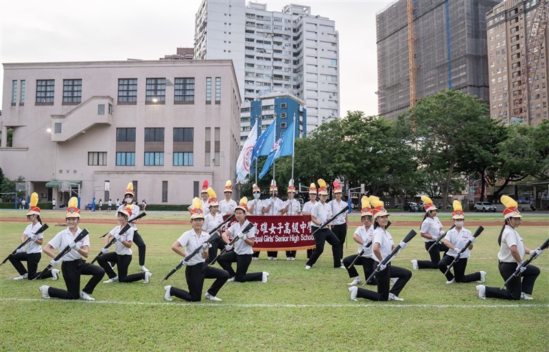 高雄女中儀隊期待和日本「翡翠騎士」交流,近日積極排練,將交流技藝。圖/高雄市教育局提供