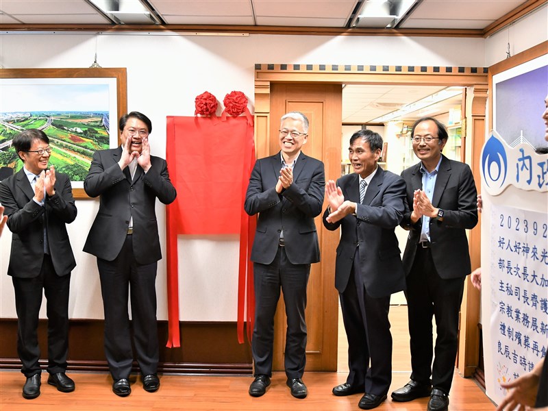 內政部長林右昌(左二)與宗教及禮制司司長林清淇(右二)共同揭牌合影。圖/內政部提供