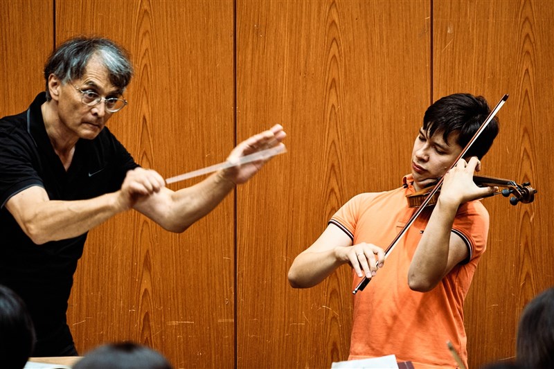 圖為國家交響樂團(NSO)指揮準‧馬寇爾,與小提琴家艾倫‧普利欽 進行排練。圖/NSO提供