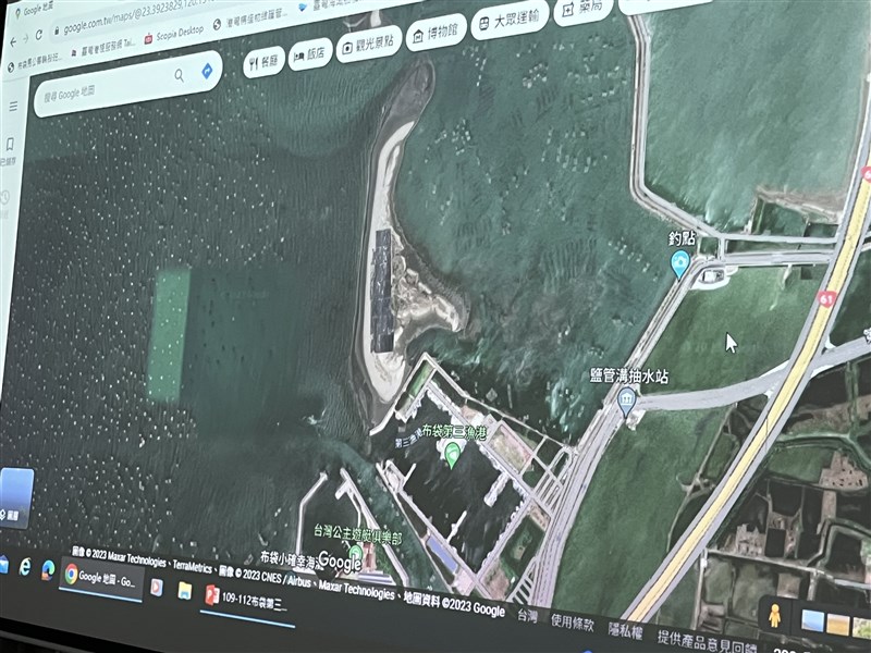 蔡易餘提問,外傘頂洲固沙刻不容緩,是否參考日本機場以水泥將沙固定,避免沙源流失?海委會主委管碧玲說,外傘頂洲附近海域是白海豚重要棲息地,仍需探討對生態影響,建議採柔性緩慢防護工法,抽取布袋港多餘淤沙,將淤沙運上外傘頂洲增加沙源,較不會侵襲白海豚的棲息地。