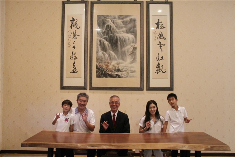 劉宗澧(左2)陪同父親劉招明(中)出席「佛光山功德主會議」,並分享奉行人間佛教的人生哲理。圖/知頌法師
