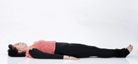 大休息式從動作看起來,是臉部面朝天,身體平躺放鬆.兩腳稍分一肩寬,很自然的雙手在身體兩側,手掌朝天,眼睛與嘴巴閉起,心情保持愉快。