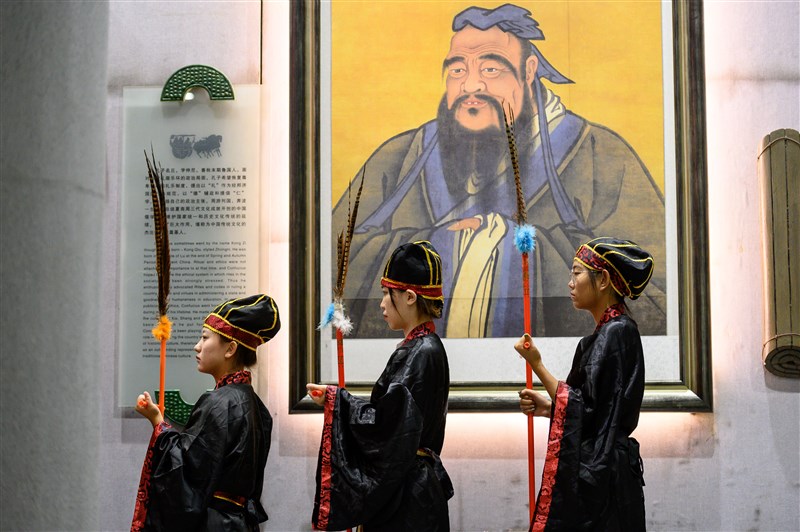 圖為山西應用科技學校學生進行佾舞表演。圖/中新社
