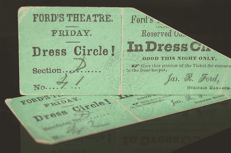 1865年4月14日晚間,林肯沒有帶首席保鏢便前往觀看《我們的美國兄弟》(Our American Cousin)一劇。根據RR Auction網站,拍賣的門票是2張前排包廂連位門票,票上分別用鉛筆寫著「D」區「41」及「42」號座位,並印有演出的地點「Ford's Theatre」、日期「APR 14 1865」及「This Night Only」(只此一夜)等字眼。