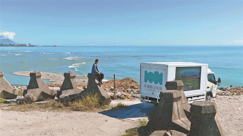 花蓮縣文化局打造行動電影車「花鐵號」,準備下鄉巡迴播放電影。圖/花蓮縣文化局提供