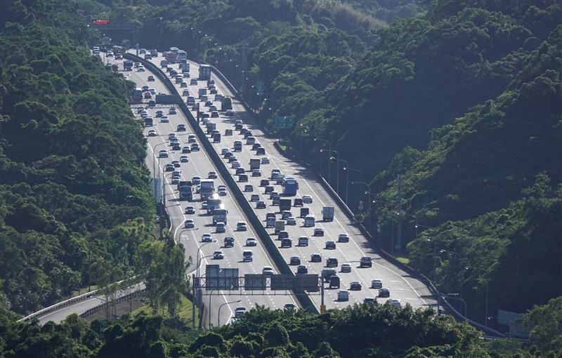 29日是中秋連假第一天,一早國道就陸續湧現車潮。圖為國道3號28日午後車多。圖/中央社