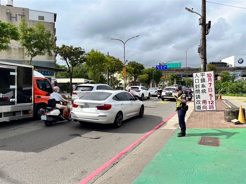 7日起將迎來國慶4天連假,台66線快速道路匯入國道1號平鎮系統交流道南下匝道入口,將在明日上午5時起至12時止,共7小時實施匝道封閉。圖/平鎮警分局提供
